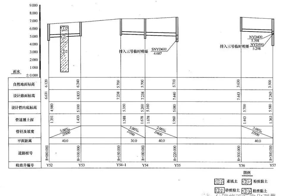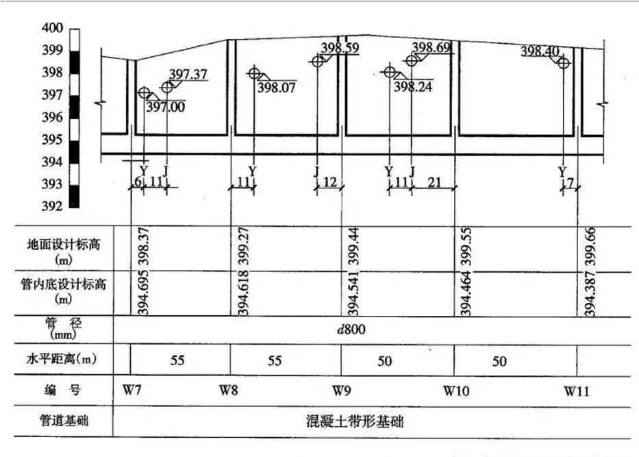 管道标高:排水管是指检查井进、出口管道内底标高