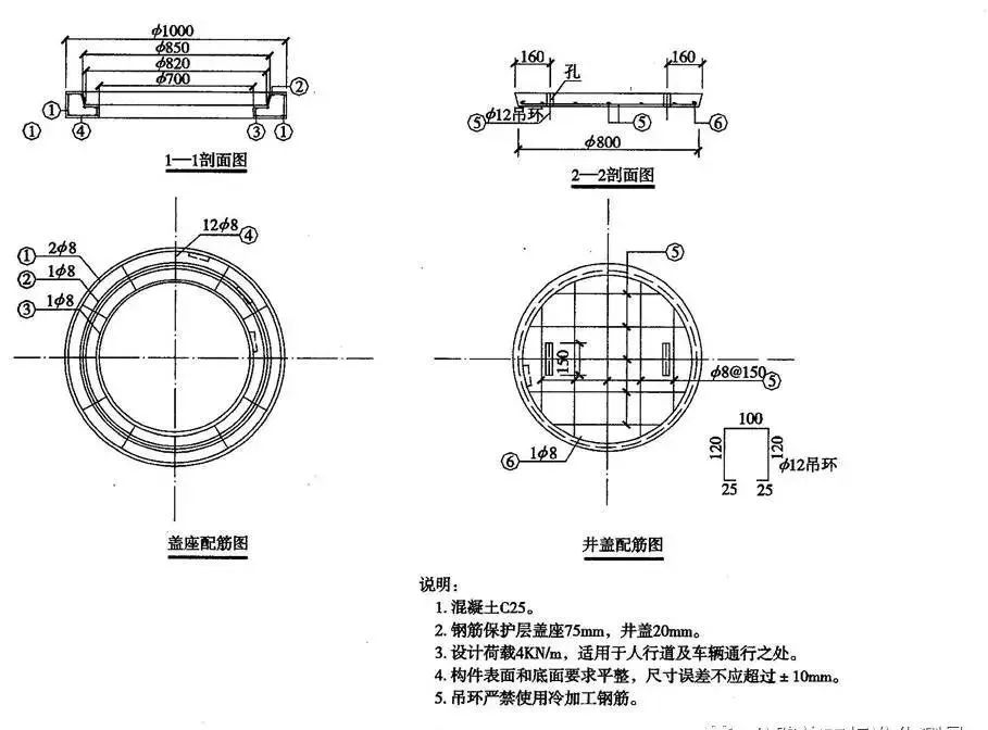 由井盖和盖座组成,常用采用铸铁、钢筋混凝土等。