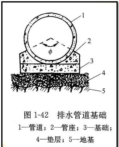 按管座的形式,分为90度、135度、180度、360度四种管座基础,根据管道埋置深度选择。