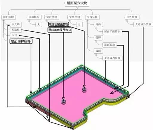 屋面层和顶层一样,在建筑物里可能出现多次,我们可以把屋面层看作一个无顶的大房间。