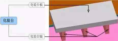 其中楼梯、水池、化验台属于复合构件,需要再进行细分,直至分到能算量为止。