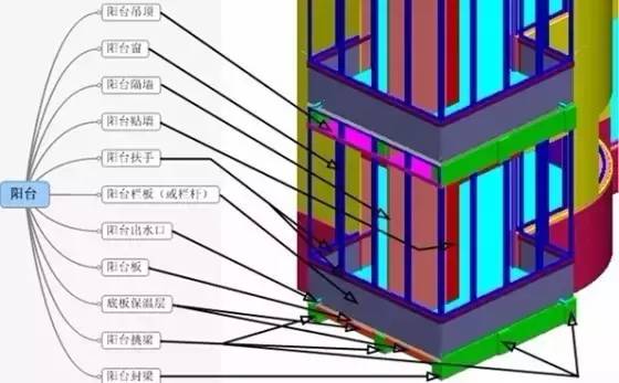 其中飘窗、坡道、台阶、阳台、雨篷、挑檐属于复合构件,需要再进行细分,直分到能算量为止。