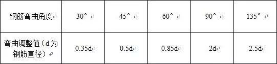 而弯曲调整值可以根据不同的弯曲角度进行取值。一般来说,可以按下表取值: