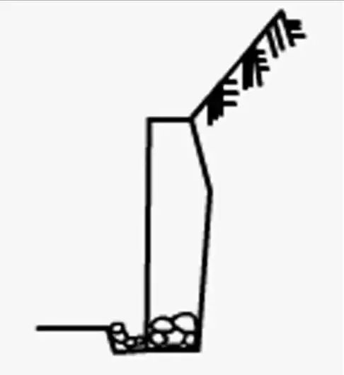 仰斜墙背适用于路堑墙及墙趾处地面平坦的路肩墙或者是路堤墙,仰斜墙背的坡度不宜缓于1:0.3,通常在1:0.15~1:0.25。