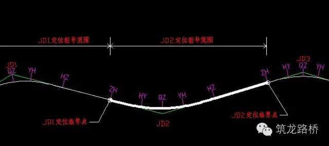 一般情况下(注意我说的是一般情况,没有断链、卵形曲线等特殊情况),交点定位临界点定义为下一交点的ZH点(或路段计算终点),当程序判定输入的桩号小于等于临界点时,就定位在了本交点上。由于数据库程序每一条数据是将交点从小到大依次编写的,程序将顺序地从第一个临界点开始判别,因此实质上程序是判别当输入桩号大于前一临界桩号、小于等于本临界桩号时(这个范围称为交点定位桩号范围),才定位在本交点上。