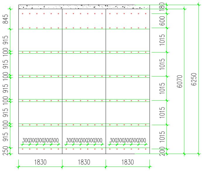 地下室6.25m剪力墙七道螺杆配模示意图(板厚180mm)