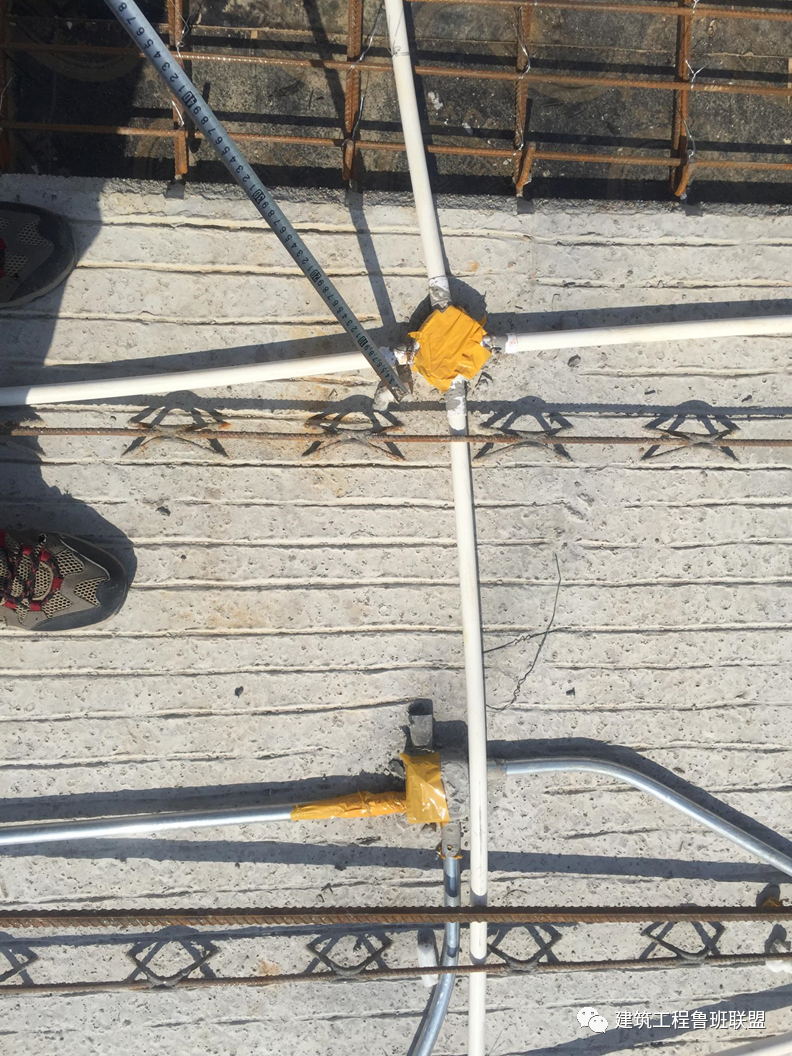线管走叠合板桁架下方,避免了线管踩踏,保护了线管又能保证地面浇筑完成后不露线管。