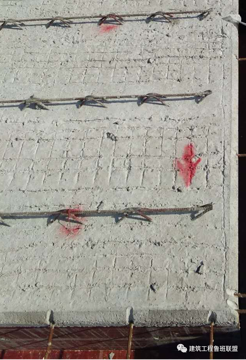 负筋交界处,分布筋绑扎在桁架筋之下,避免多层钢筋交叉造成保护层减小,影响现浇面平整度。