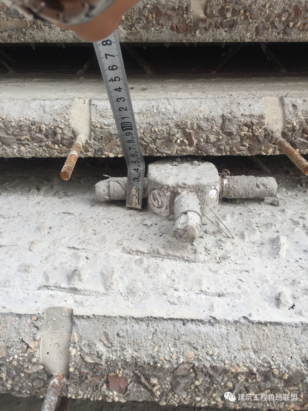预埋线盒四个方向加设锁母并封堵,查看锁母离板面高度,是否满足施工要求: