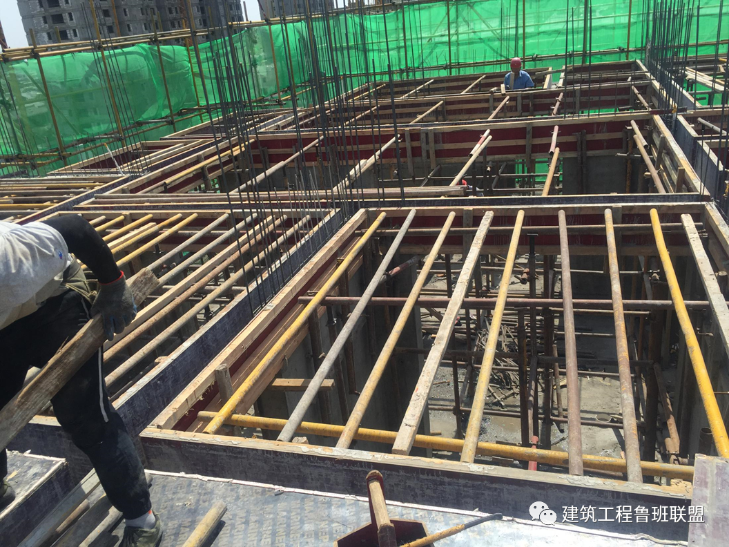 2、板带位置模板支撑加固不到位,浇筑砼后导致模板变形漏浆。