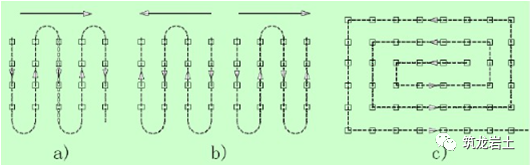 (2)打桩顺序一般按先深后浅、先长桩后短桩、先大径后小径、先施工大承台桩后施工小承台桩的原则,由于桩的密集程度不同,可自中间分两向对称前进,或自中间向四周进行;当一侧毗邻建筑物时,由毗邻建筑物处向另一方向施打。