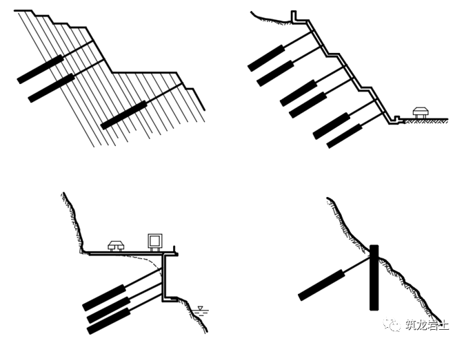 边坡工程中使用的锚杆是一种安设在岩土层深处的受拉杆件,其一端与工程构筑物相连,另一端锚固在岩土层中,必要时需对其施加预应力,以承受岩土压力、水压力或风荷载等所产生的拉力,再将拉力传递到深部稳定岩土层中,达到有效承受结构荷载及防止边坡变形失稳的目的。