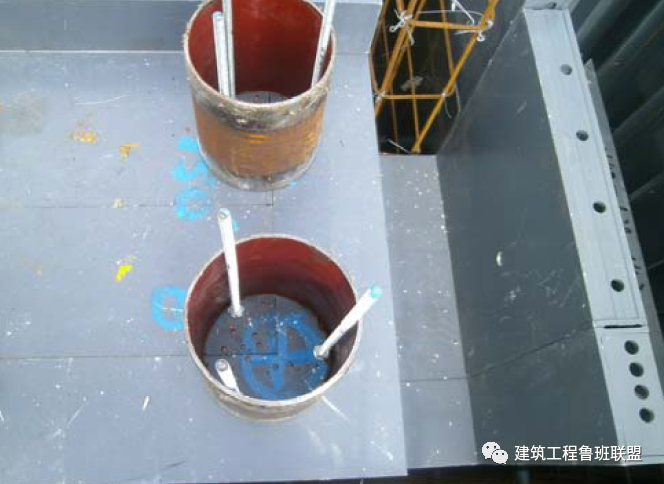 (2)套管通过内径加支撑的形式,固定在铝模上面,防止套管偏位。