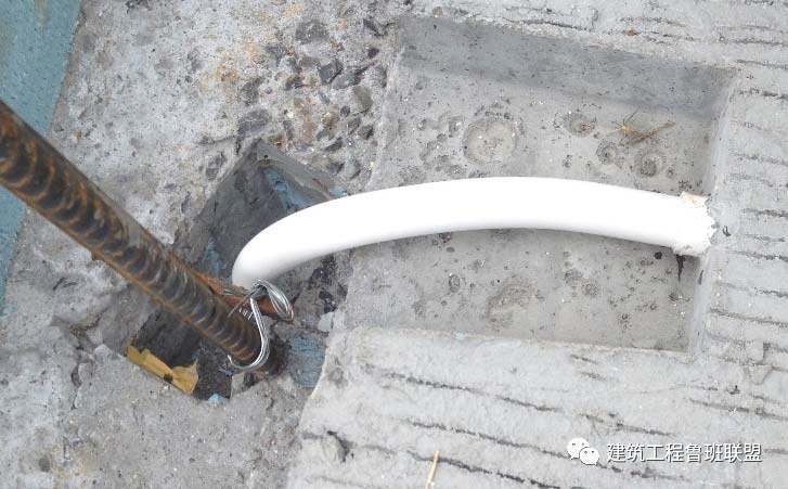 楼梯前室楼板内预留线管,按照乙字弯的形式将进入过梁的管道弯至平行于结构面,且略露出结构面。