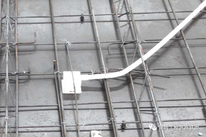 (5)现浇楼板内预埋线管跨过梁处乙字弯应预制好,保证出结构面上线管紧贴结构面;