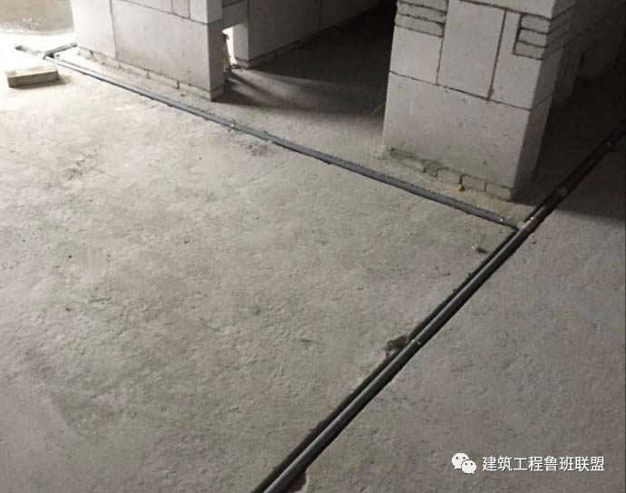 现浇层混凝土浇筑成型后,按照给水管布置走向,在混凝土初凝前使用条形DN50的钢管在地面上预留管槽。管槽深度约1公分。