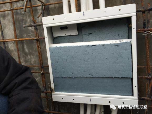 (3)PPR 管暗埋进墙体,一次成型,通过堵头固定在铝模上面;