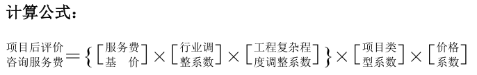 根据建设项目不同的性质、内容和所处区域,采取按估算投资额分档定额方式计费,计算公式:本合同社会稳定性风险评估报告编制费基价为: 万元。PPP项目咨询服务费按照《关于印发 PPP 项目咨询服务收费参考(试行)的通知》(粤咨协〔2016〕28 号)文件计取。初步实施方案编制费、物有所值评估报告编制费、财政承受能力论证报告编制费、实施方案编制费、PPP 项目合同咨询费、中期评估报告编制费按项目估算投资额分档计费,具体根据项目估算投资额在相对应的区间内用插入法计算,如下表所示:(单位:万元)②估算投资额为项目建议书或可行性研究报告中的估算投资额;本合同专业领域调整系数按项目涉及专业领域数量确定为: 项目后评价咨询服务费按照《中央政府投资项目后评价管理办法》 (发改投资〔2014〕2129 号)、《国家计委关于印发建设项目前期工作咨询收费暂行规定的通知》(计价格〔1999〕1283 号)、《关于印发 PPP 项目咨询服务收费参考(试行)的通知》(粤咨协〔2016〕28 号)文件计取。