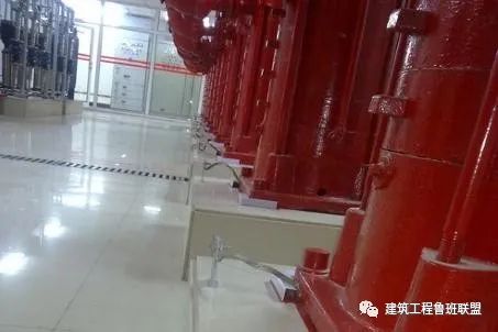 等电位联结线与水泵、空调机组等设备基础的连接(如示意图):当设备与基组为组合式时,设备与机组用螺栓有效固定,并利用接地线(编织铜带或铜芯软线)将水泵、空调机组等设备基础所配的螺栓与等电位引出端连接。