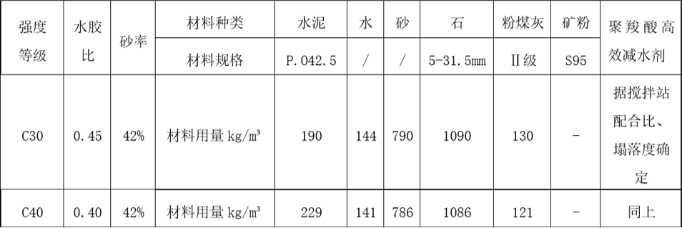 (2)采用较小的水胶比,每立方米混凝土用水量减少5~15kg,提高混凝土密实度。