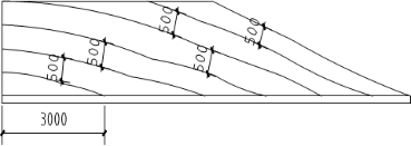 厚底板混凝土采用“一个坡度、分层浇筑、循序推进、一次到顶”的浇灌工艺,分层厚度不超过 500mm,坡度为 1:6~1:7。混凝土浇筑法为分层布料、分层振捣、斜坡推进法施工, 见下图: