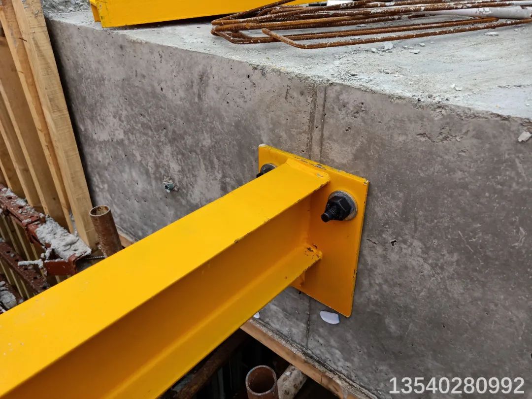 16#或18#工字钢(深圳市地方要求,必须用18#工字钢)为主件,焊接底座锚固板、三角加强板、U型吊耳