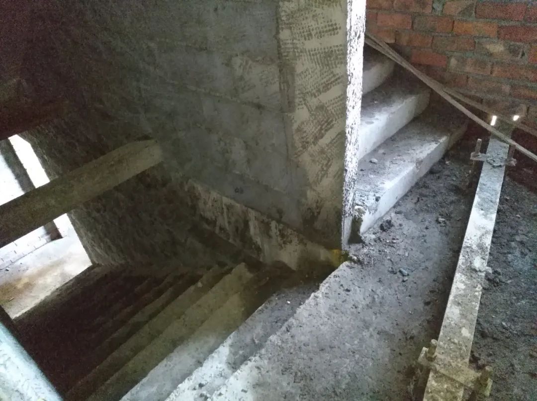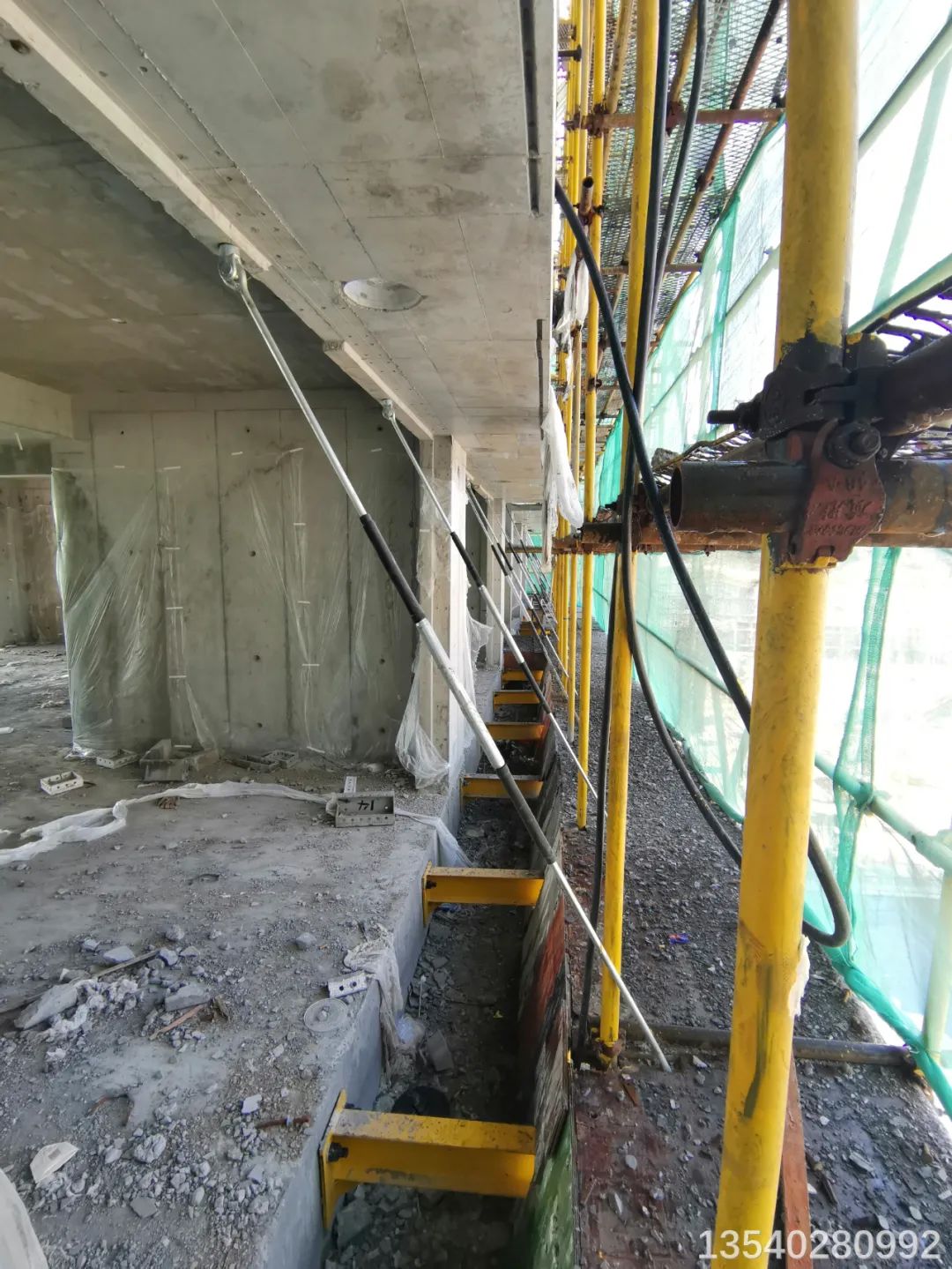 (2)悬挑工字钢的布局恰巧与楼梯位置相碰时,横在楼梯走道中的工字钢,影响作业人员上、下走动。