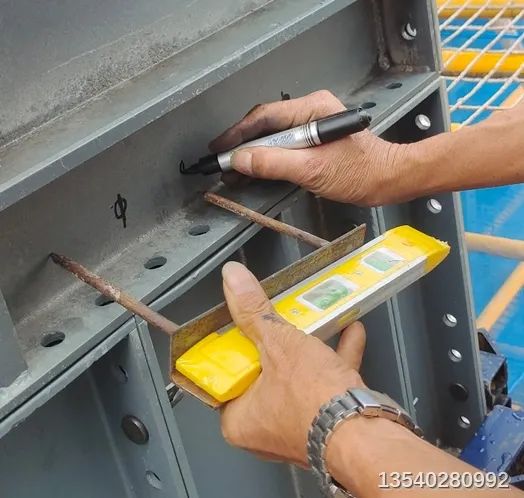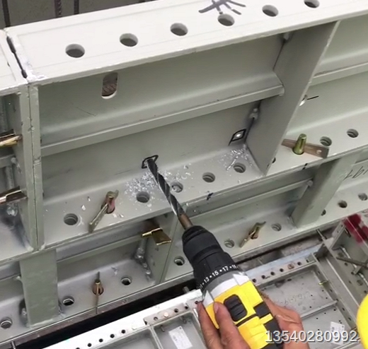 1、在钢筋绑扎完成、模板加固完成后,根据施工方案,在梁、墙侧面准确定点用醒目颜色油漆笔标记点位,在模板上钻1.2cm的孔,通过预埋件外接的螺母与模板固定(预埋位置必须满足混凝土结构面以下10cm)。