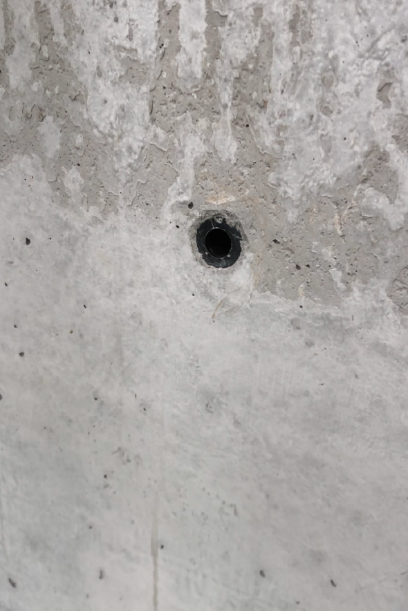 扭出安装螺杆,外侧模板拆除后,露出预埋件