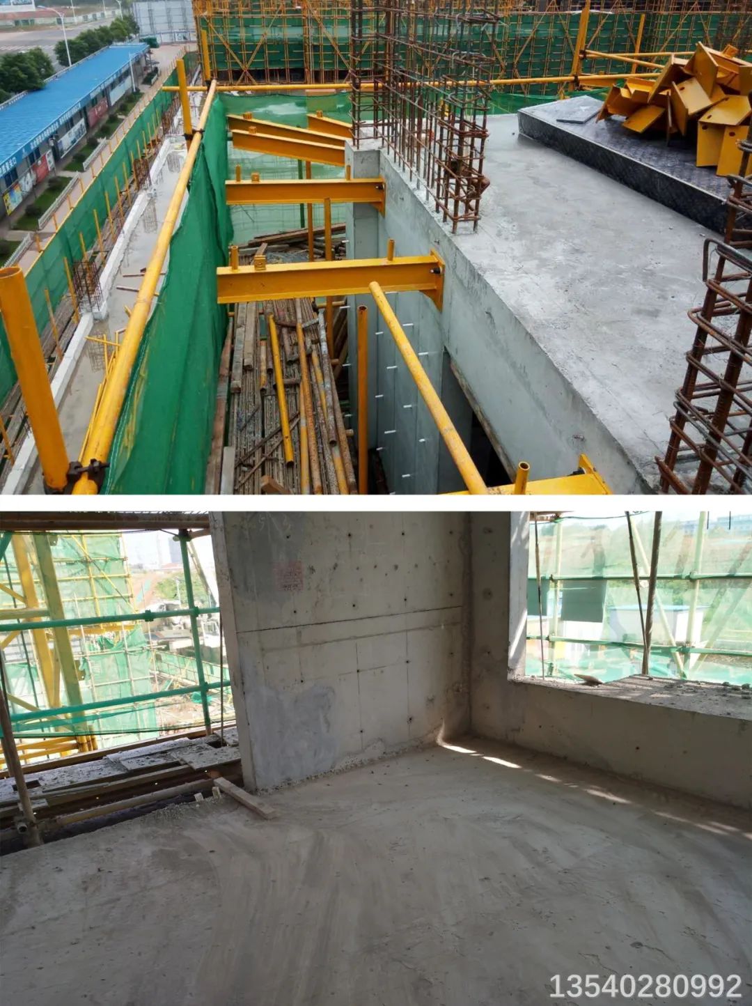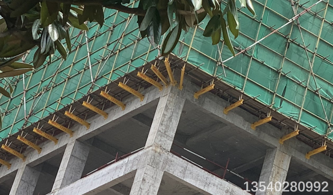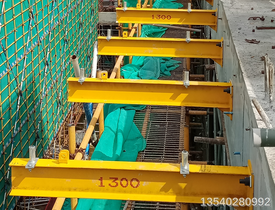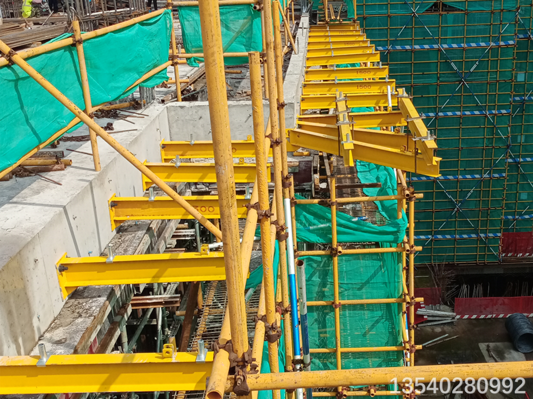 使用新型悬挑承力架的悬挑梁,均为定型化制作,最长悬挑梁为2.5米,优点见下: