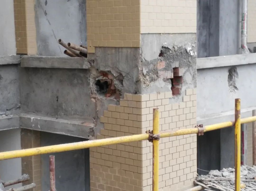 新型悬挑承力架的悬挑梁拆除后,墙面整洁,无任何破坏。
