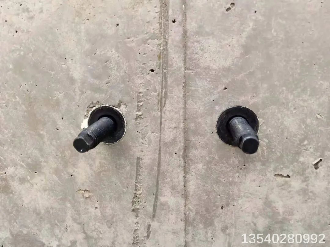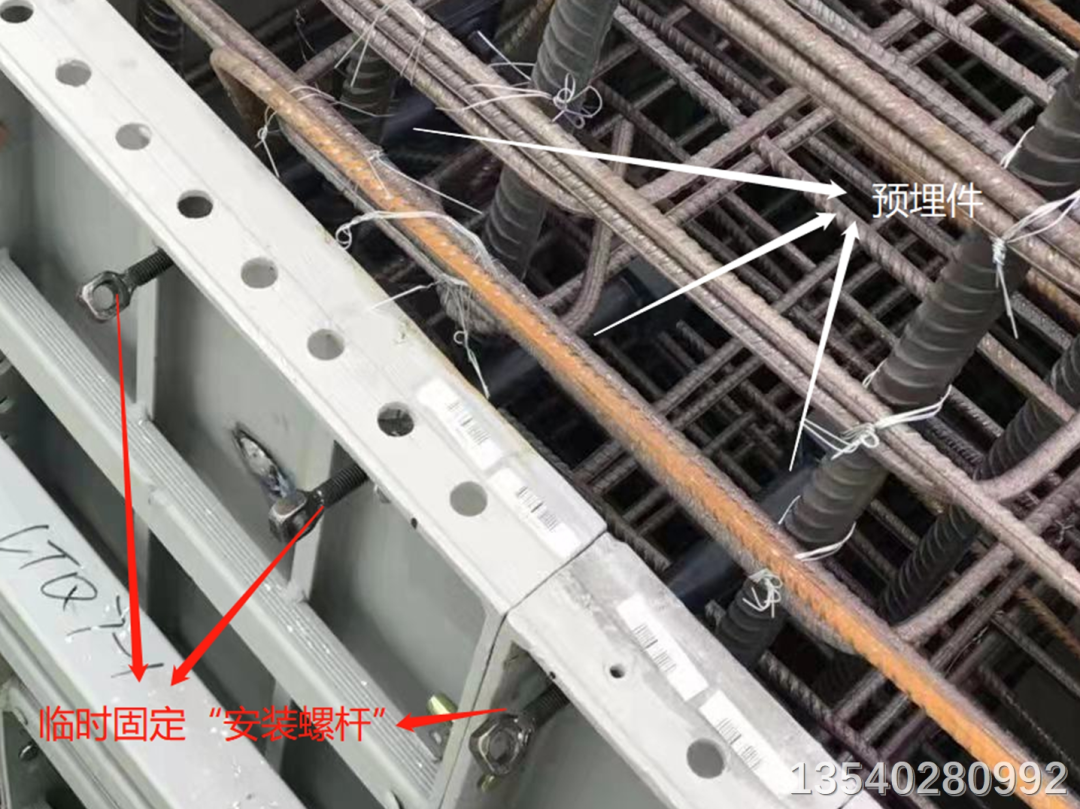2、安装螺杆:本工艺配套专用的“临时固定螺杆”,用于确保混凝土浇筑过程中预埋件不会产生偏位。混凝土浇筑后,拆侧模板前,需扭出退出的周转配件。