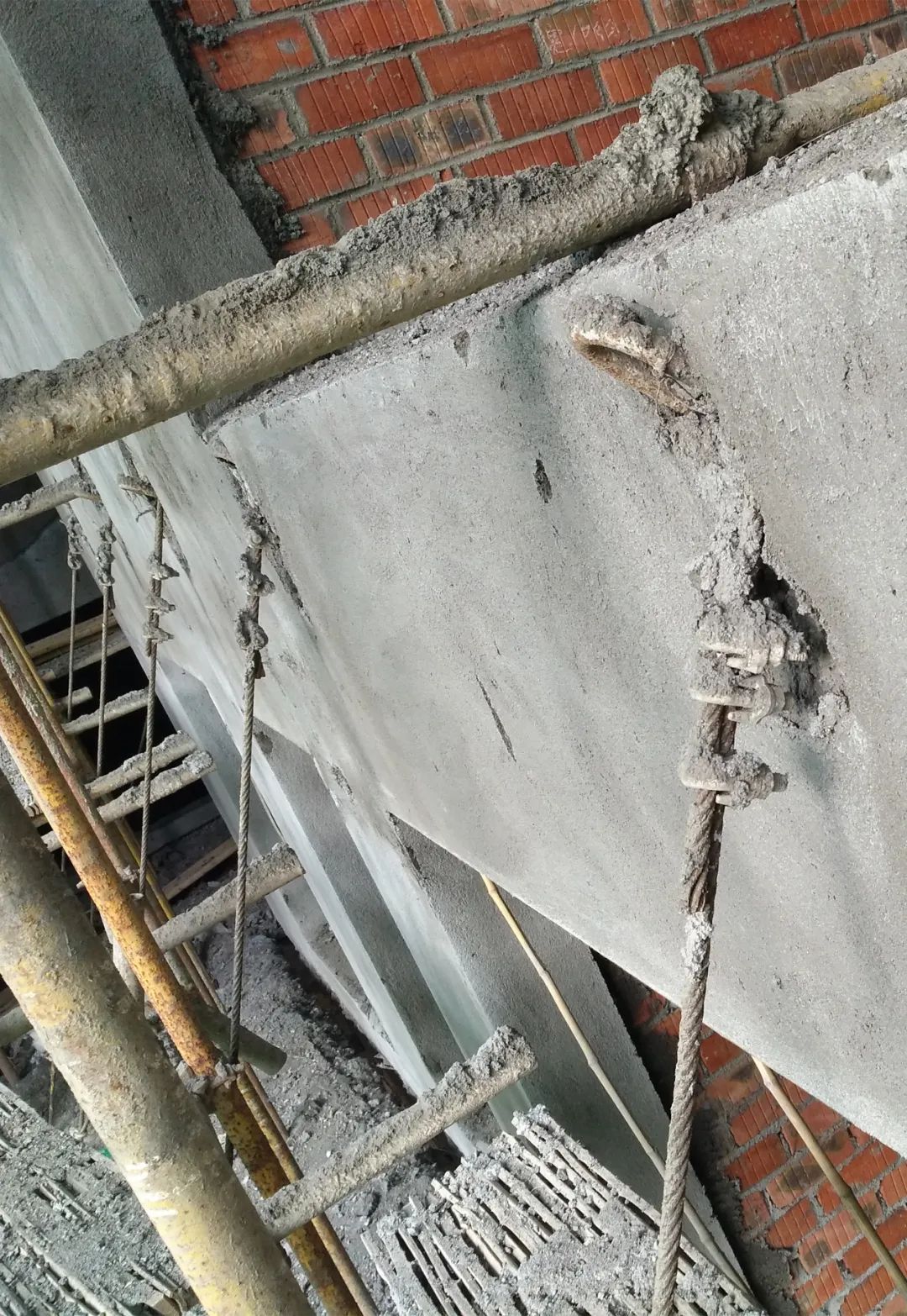 (7)对于悬挑结构(如:阳台),的新配筋布设,不局限于悬挑本层,同时,上拉层的钢筋布设,也必须按“施工方案”或“计算书”里的新配筋图来布设钢筋。
