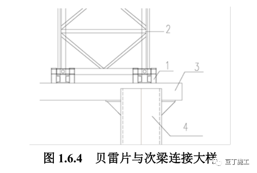 (1-8mm 厚钢板 U 型卡;2- 贝雷片;3- 次梁)