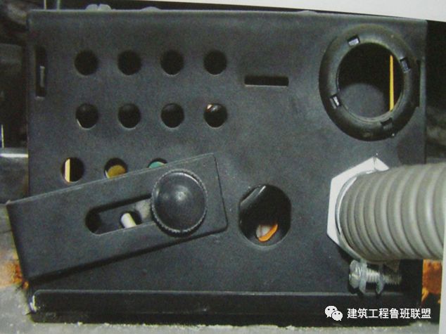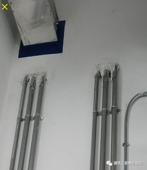 错误:连接部位一半设置在墙内,安装维修都不便,接地跨接也无法连接。