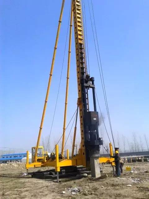 柴油打桩机由柴油桩锤和桩架两部分组成。桩架有专用的,也有利用挖掘机或起重机上的长臂吊杆加装龙门架改装而成。柴油桩锤按其动作特点分导杆式和筒式两种。导杆桩锤冲击体为气缸,它构造简单,但打桩能量小;筒式桩锤冲击为活塞,打击能量大,施工效率高,是目前使用较广泛的一种打桩设备。
