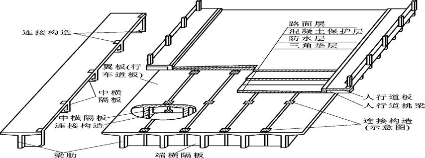 图11-5 桥梁的截面形式 (a)装配式T形梁; (b)箱梁桥横截面