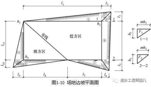 了保证挖方土壁和填方区的稳定和施工安全,场地挖方区和填方区的边沿都需要做成边坡,其平面图如图1-10所示。