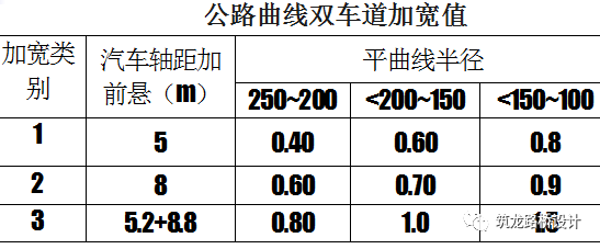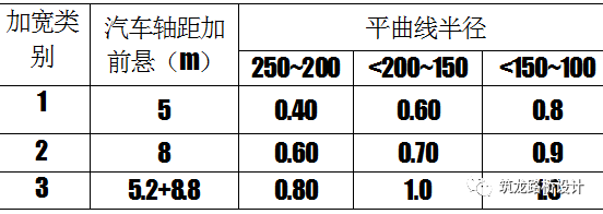 由于车辆在弯道上所占的空间大于直线上所占的空间,半径小于250米的路段,均需要设置加宽。