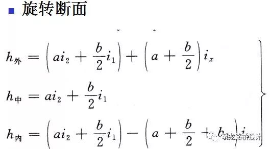 由于超高断面是分3个部分完成的,因此每个过程中超高都是不同的,应该分别计算。