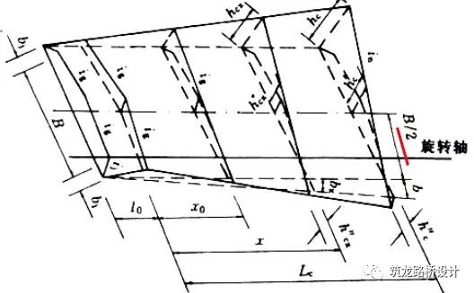 第三步,整个断面再以道路的中心线为旋转轴旋转,直至超高横坡。所需要长度为Lc-x0
