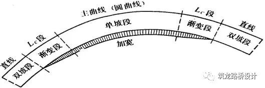 双坡断面:从超高缓和段起点到路面外侧变成与内侧相同坡度这一阶段内的断面。