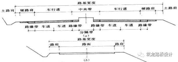 路线设计中所讨论的横断面设计只限于公路路肩外侧边缘(城市道路红线)之间的部分,也称路幅设计。