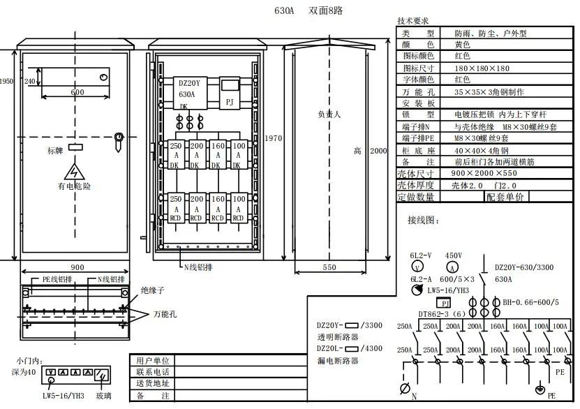 630A六回路总配电柜电气系统图