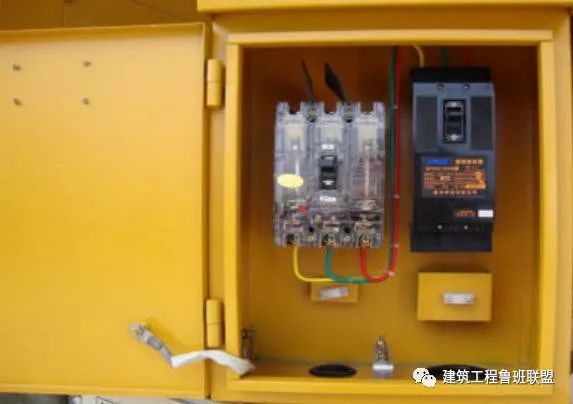 注:开关箱中漏电断路器必须选择额定漏电动作电流不大于30mA,额定漏电动作时间不大于0.1S,电流速断、电磁式电动机保护用产品。总配电箱中漏电断路器应选用配电保用产品。