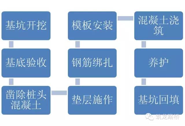 承台:指的是为承受、分布由墩身传递的荷载,在基桩顶部设置的联结各桩顶的钢筋混凝土平台。承台作为承上启下传递荷载作用的构造,它的尺寸往往都比较大,也就是说钢筋混凝土量较大,通常都会涉及大体积混凝土的施工措施。一般采用机械开挖(反铲挖掘机)、辅以人工清底找平的方式。一般机械挖至基底以上20cm,由人工挖除,以防止扰动地基。根据承台尺寸、支模板及操作要求、设置排水沟、集水坑的需要以及边坡防护需要等确定。一般坑底比承台尺寸多出0.5~1m。开挖坡度以保证边坡的稳定为原则,根据地质条件、开挖深度、现场的具体情况确定,一般在1:0.33-1:1左右。1)集水坑排水法。除严重流沙外,一般情况下均可适用。2)井点排水法。当土质较差有严重流沙现象,地下水位较高,挖基较深,坑壁不易稳定,用普通排水方法难以解决时,可采用井点排水法。3)其他排水法。对于土质渗透性较大、挖掘较深的基坑,可采用板桩法或沉井法。约请验桩单位进行桩基检验,待检测单位出据检验报告结果并合格后方可进行下道工序。验桩完成后,由测量人员根据栓桩放出基础的十字中心线,并放出基础模板边线,同时放出墩柱中线,以保证承台筋位置准确。1)受力钢筋同一截面的接头数量、搭接长度、焊接和机械连接头的质量应符合施工技术规范要求。2)钢筋安装时,必须保证设计要求的钢筋根数,受力筋必须平直,表面不得有裂纹和其他损伤。3)实测:受力钢筋间距、箍筋和横向水平筋以及螺旋筋间距、钢筋骨架尺寸、保护层厚度、预埋件位置。脱模剂使用优质30#机油(或者色拉油),支模前对模板表面进行清理后,用棉丝均匀涂刷机油。模板安装完毕后,对其平面位置、顶部标高、节点联系及纵横向稳定性进行检查,自检合格后约请监理检查验收,签认后方可浇筑混凝土。混凝土强度达到2.5MPa以上后,经监理同意,可以拆除模板。拆模时,首先去掉底部的底撑,然后放开顶部的对拉螺栓,将吊车的吊钩与模块吊环固定后,去掉斜撑,槽内人员全部撤离,人工在承台顶部用木杠慢慢撬开模板,使模板与承台分开,指挥工统一指挥,吊车缓慢提升,慢慢吊离承台,防止磕碰。拆摸时混凝土与环境的温差不得大于15℃。当温差在10~15℃时,拆除摸板后的混凝土表面应采取临时覆盖措施。采用外部热源加热养护的混凝土,当环境气温在0℃以下时,应待混凝土冷却至5℃以下后,方可拆除摸扳。承台拆模后及时进行基槽清理,将槽内各种杂物清理干净,经监理检验合格,后方可进行承台基槽的回填。以上内容来源于网络收集整理,如有侵权请联系客服