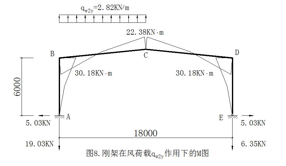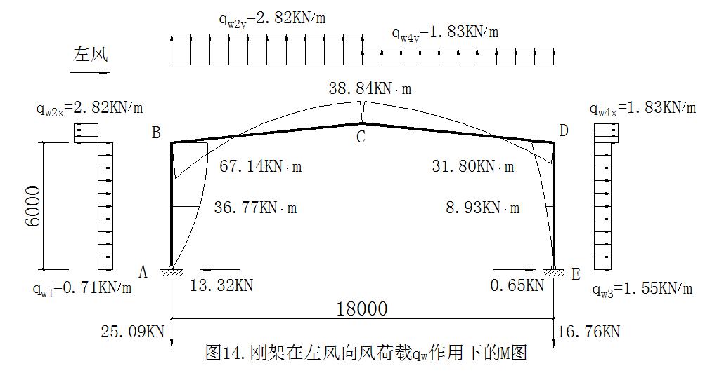 (1)在迎风面横梁上风荷载竖向分力qw2y作用下