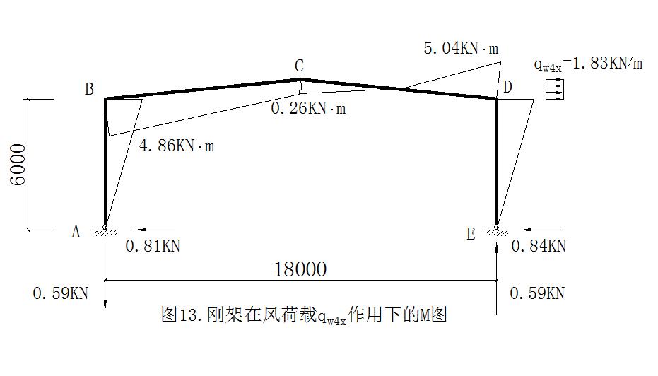 (6) 在背风面横梁上风荷载水平分力qw4x作用下
