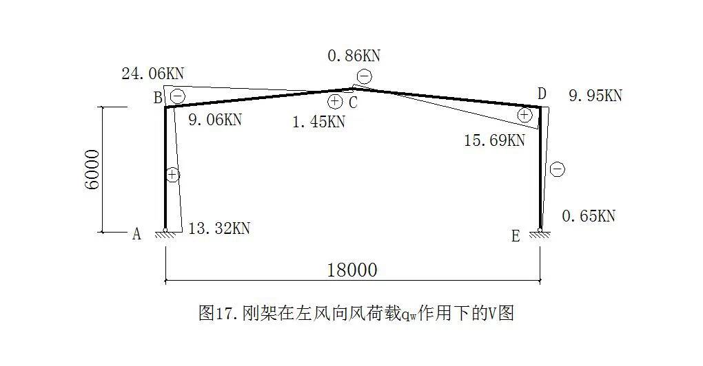 (7)用叠加绘制在风荷载作用下刚架的组合内力。