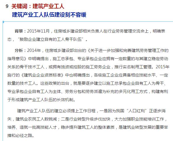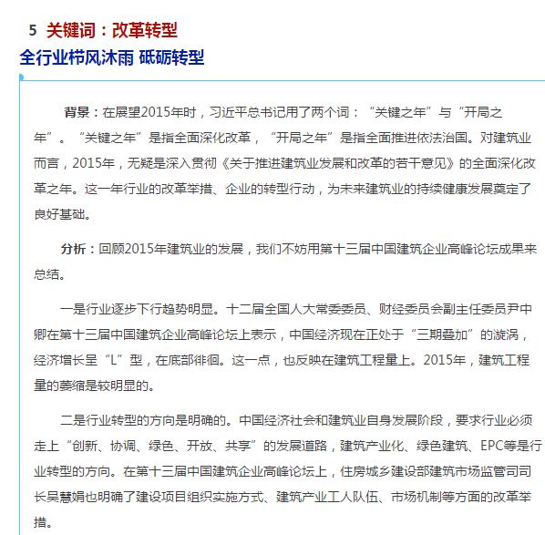 以上就是为您盘点的2016年十大建筑业风向标,展望来年建筑业能有更好的发展,让我们一起期待!